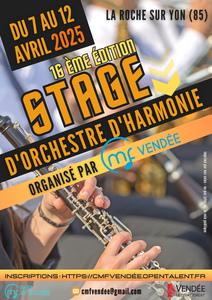 Destiné aux musiciens de 2e niveau, il se déroulera du 7 au 12 avril 2025 à l'école des Etablières, site de La-Roche-sur-Yon.