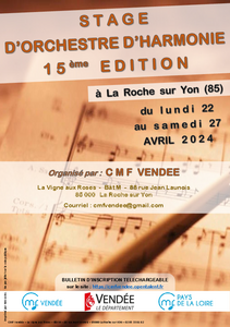 Destiné aux musiciens de 2e niveau, il se déroulera du 22 au 27 avril 2024 à l'école des Etablières, site de La-Roche-sur-Yon.